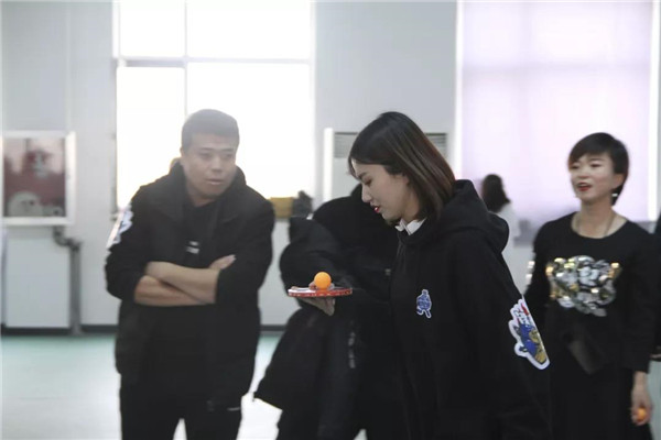在比賽中隊(duì)友們相互鼓勵(lì),相互配合。乒乓球接力不僅考驗(yàn)隊(duì)員的速度、耐心,更考驗(yàn)著隊(duì)員們團(tuán)結(jié)協(xié)作的能力,以及彼此的默契程度?,F(xiàn)場游戲活動(dòng)中,比賽氣氛和諧快樂,大家都被簡單的互動(dòng)游戲所感染,一陣陣吶喊助威聲從運(yùn)動(dòng)場上傳來。